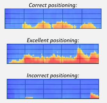 Before starting the recording, a screen allows you to check the correct positioning of the sensor using a spectrogram. You are then able to visualize your venous flow.