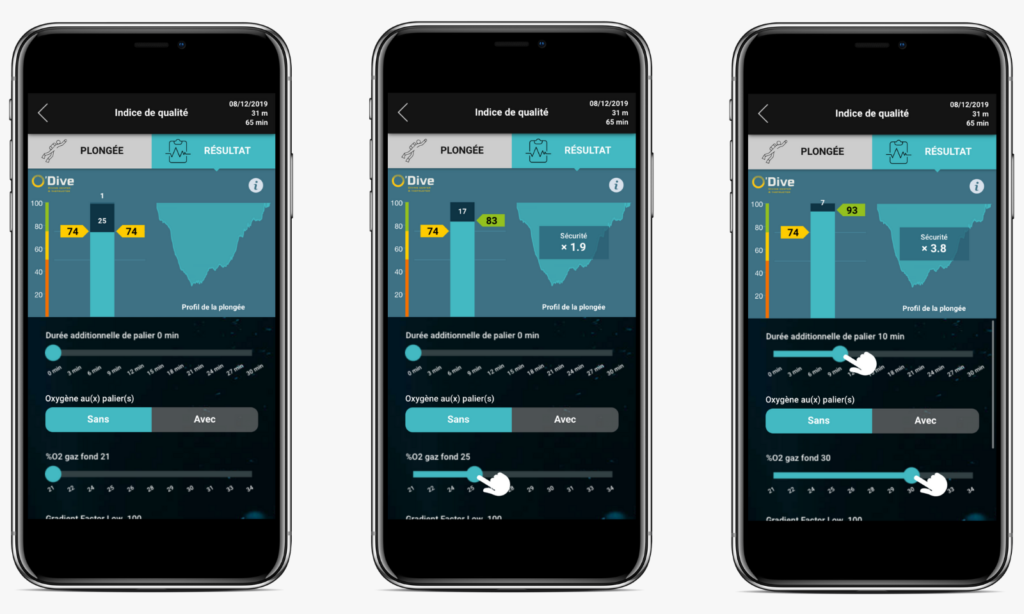 Dans un tel contexte, l’intérêt de O’Dive est de fournir au plongeur un critère d’appréciation du niveau de qualité de sa désaturation.