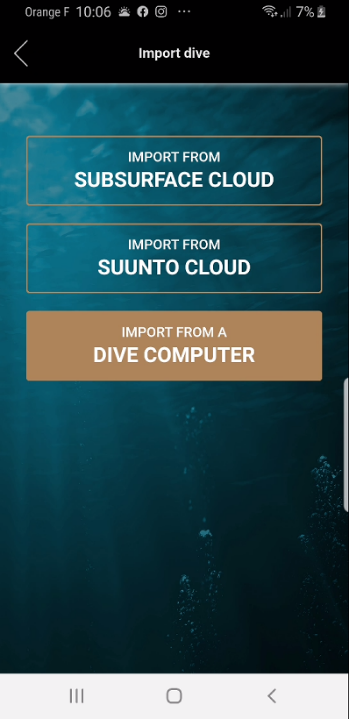 Il vous suffit ensuite de retourner sur l’application O’Dive et d’importer les paramètres de la plongée en rentrant vos identifiants Suunto.